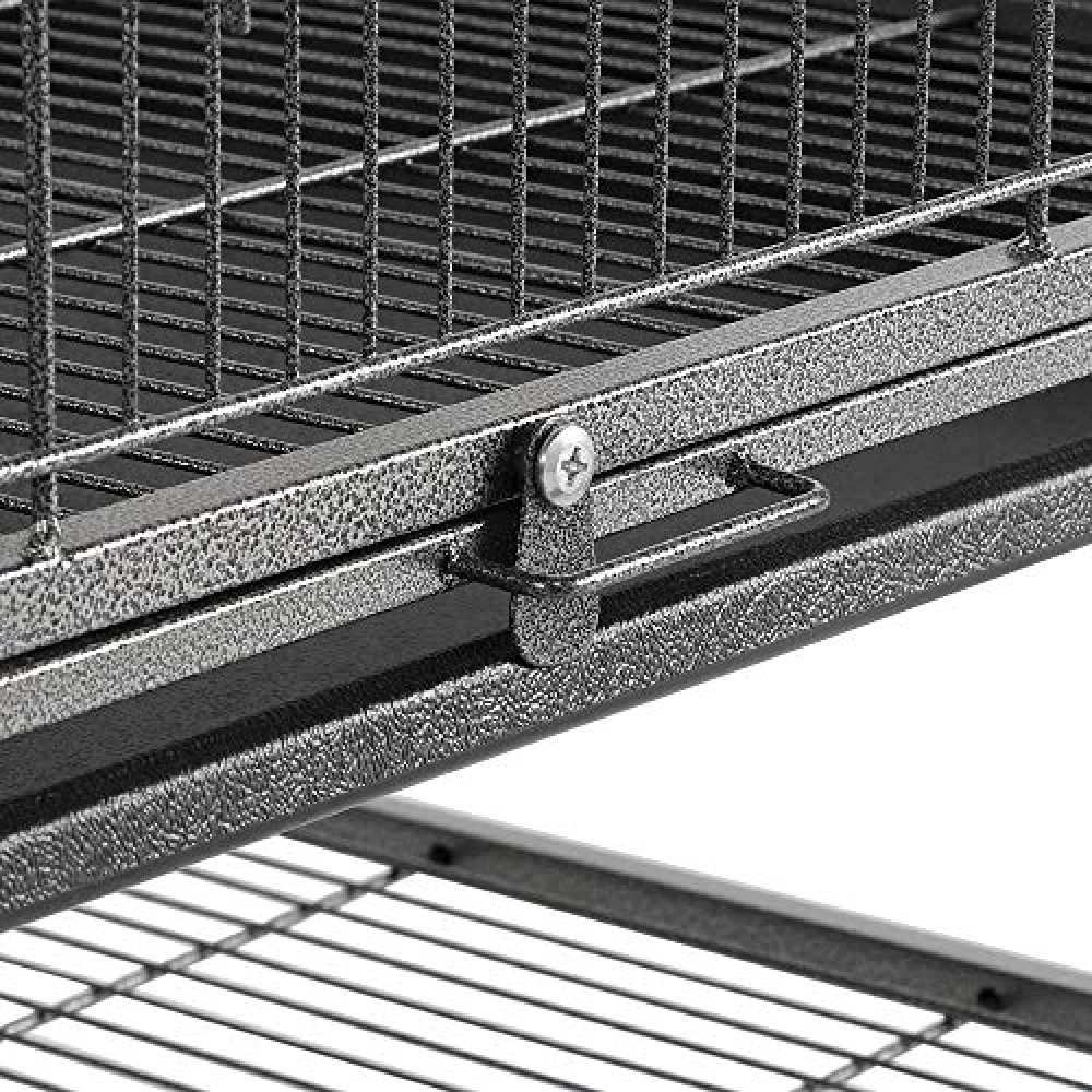 Nicht nur die Vögel, auch das menschliche Auge freut sich über das schlichte und moderne Design. Die pulverbeschichtete Oberfläche ist nicht nur ein optisches Highlight, sondern sorgt auch für Langlebigkeit und einfache Pflege. Das Regal unter dem Käfig ist ein echtes Stauraumwunder und nimmt alles auf, was sonst herumfliegen würde – von Futter bis Federboa.